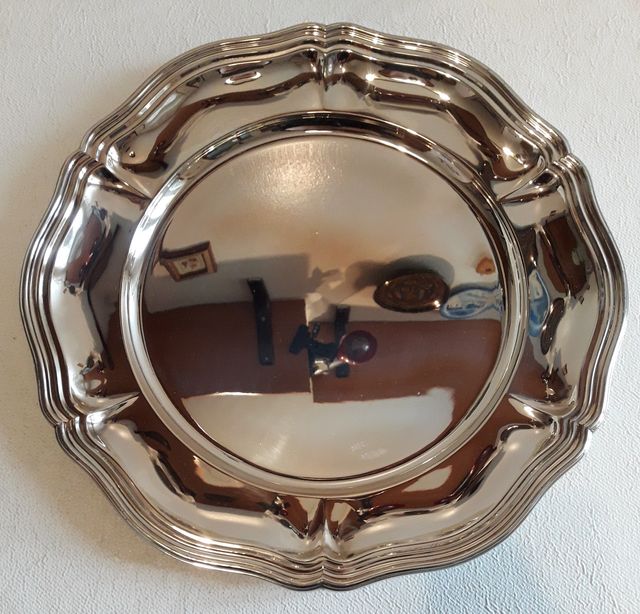 Dettagli del prodottoPiatto in argento 800 da 633 grammi, diametro 33 cm e altezza 2,3 cm circa
