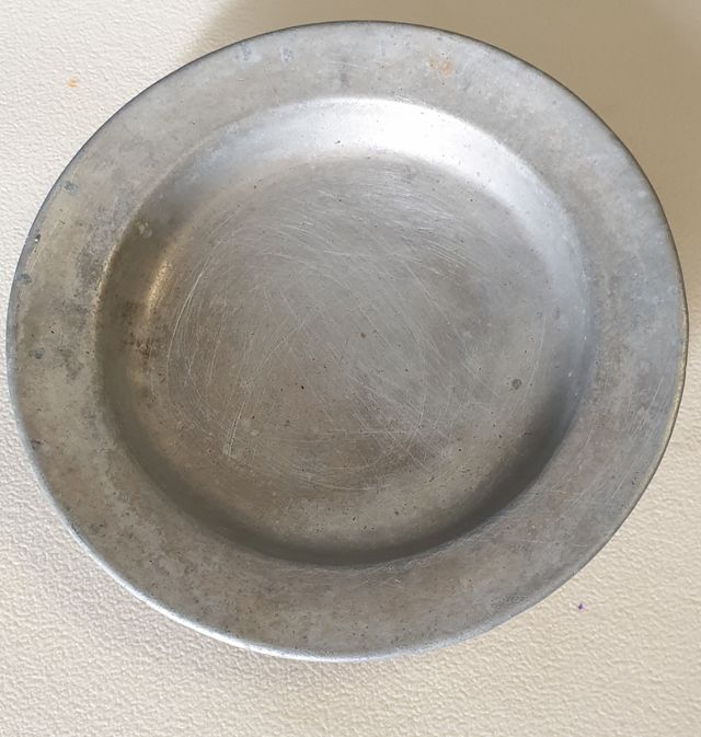 Piatto in metallo, probabilmente di uso militare, risalente agli anni '40. - Materiale: metallo. - Epoca: anni '40.