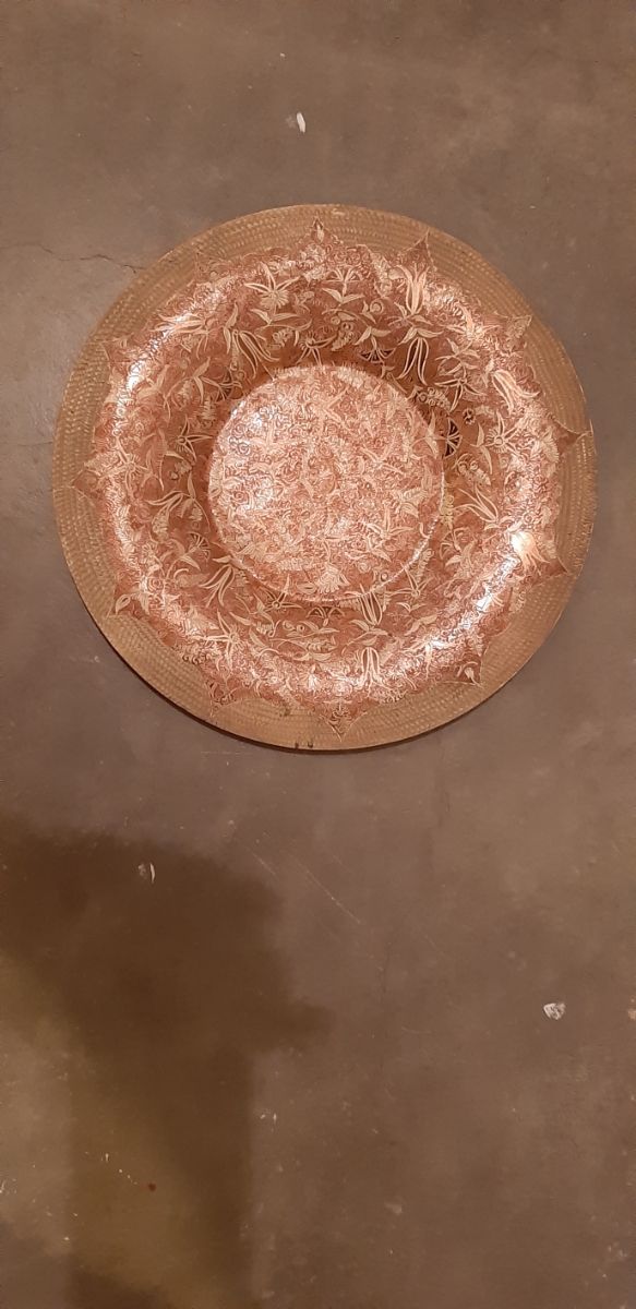Piatto in rame decorato a mano da appendere al muro come arredamento. diametro circa 40 cm. Probabile provenienza Marocco