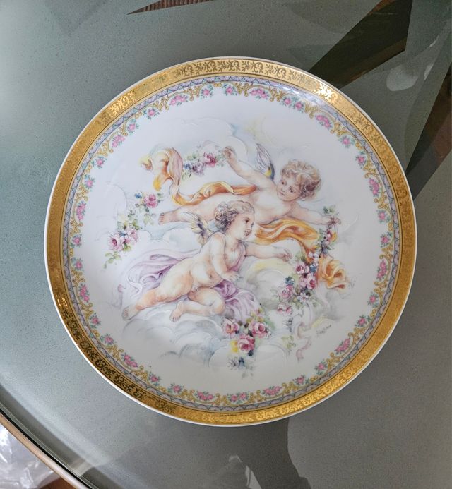 Porcellana decorata " Angeli Putti" in foglia oro...diametro 24 cm...prezzo non più trattabile...