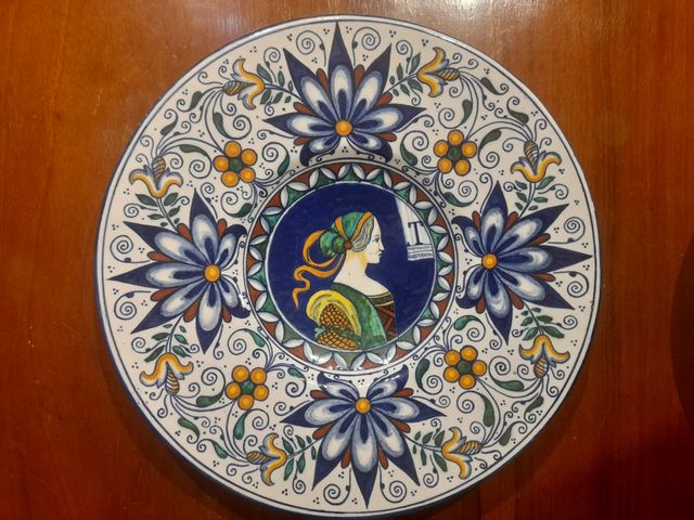 Dettagli del prodottoVendo coppia di piatti d'arte in maiolica di manifattura della C.S.M. Faenza. I piatti sono decorati a mano in stile rinascimentale con motivi floreali e figure umane. Ideali come oggetti decorativi, da collezione o come piatti da esposizione.