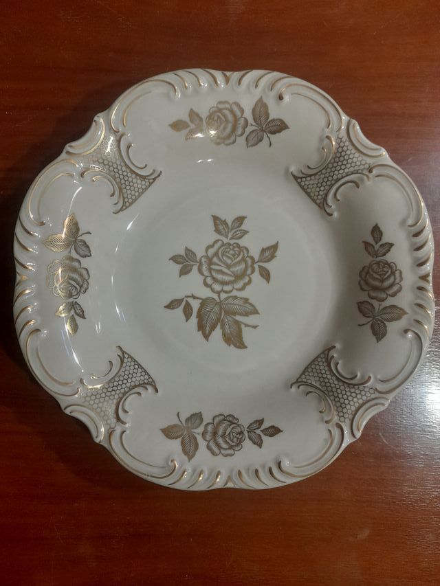 Dettagli del prodottoVendo elegante piatto vintage in porcellana Schumann Bavaria, con bordatura e decorazione floreale con dettagli in oro.
