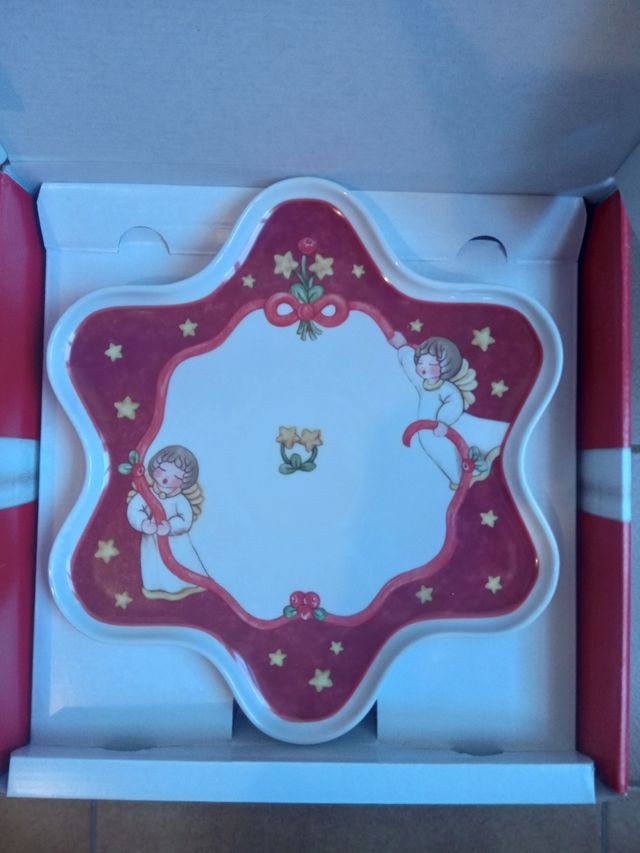 Dettagli del prodottoVendo piatto della linea natalizia "Sweet Christmas" della Thun. Realizzato in porcellana sotto smalto, sagomato a forma di stella, con dimensioni 30x23,5 cm. Mi è stato regalato, ma non amo la Thun e non lo uso. È nella sua confezione originale, con il certificato di autenticità.