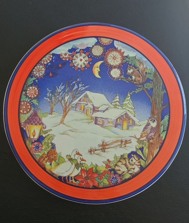 Dettagli del prodottoPiatto natalizio vintage, primi anni 80', in ceramica artigianale VARM decorato a mano, made in italy. Diametro 33cm. Eccellente qualità. Nuovo, mai utilizzato.