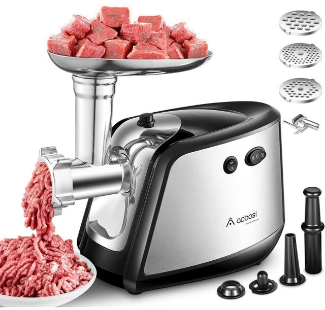 Dettagli del prodottoMarca Aobosi. Tritacarne elettrico 3-in-1, con 3 dischi in acciaio inossidabile per tritare, coni e tubi per farcire salsicce, motore 1200W, per un taglio rapido e fine. Caratteristiche e misure nelle foto. Tritacarne elettrico per casa, cucina e altro. Prodotto nuovo. NR-2231. La descrizione è stata tradotta automaticamente.