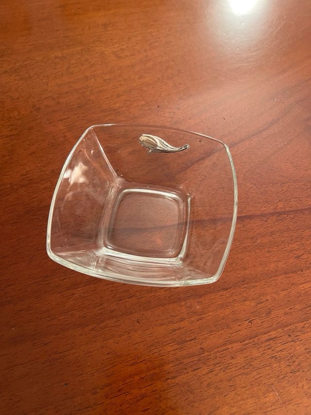 Piccola ciotola in vetro con fiore in argento. Ottime condizioni.