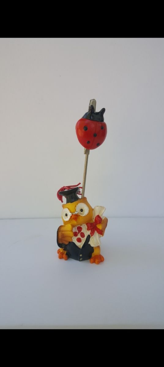 Portafoto con gufo e coccinella.Altezza totale cm.10 gufo cm.5 Nuovo