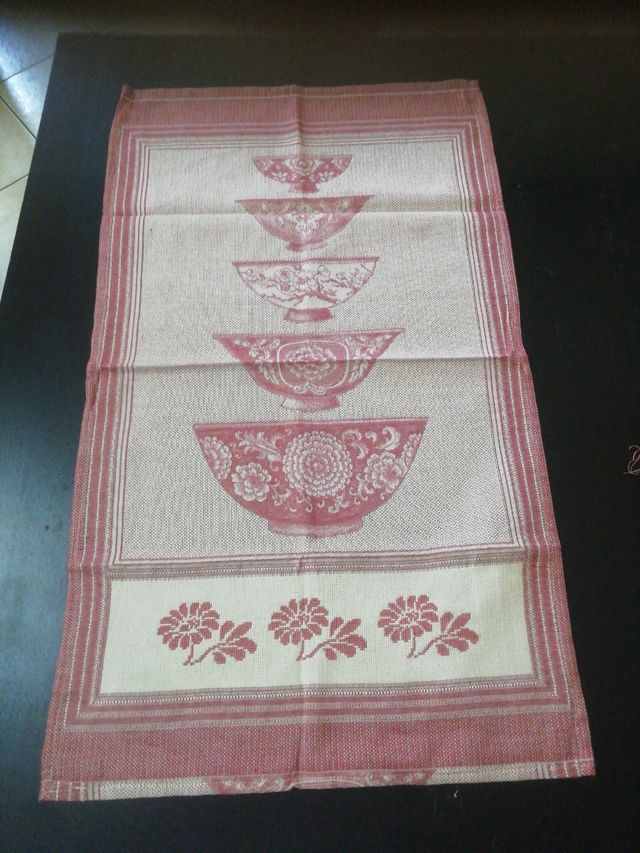 Runner in cotone ricamato a mano a punto croce. Mai usato. Misure 44*75 circa. Colore rosa e panna.