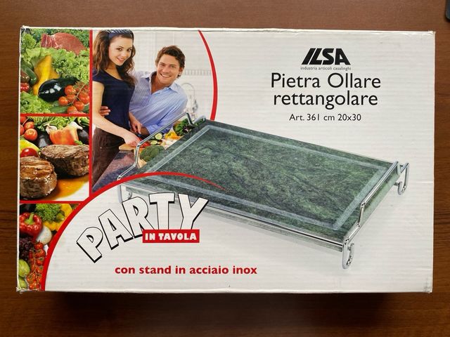 Pietra ollare rettangolare con stand in acciaio inox. 20x30