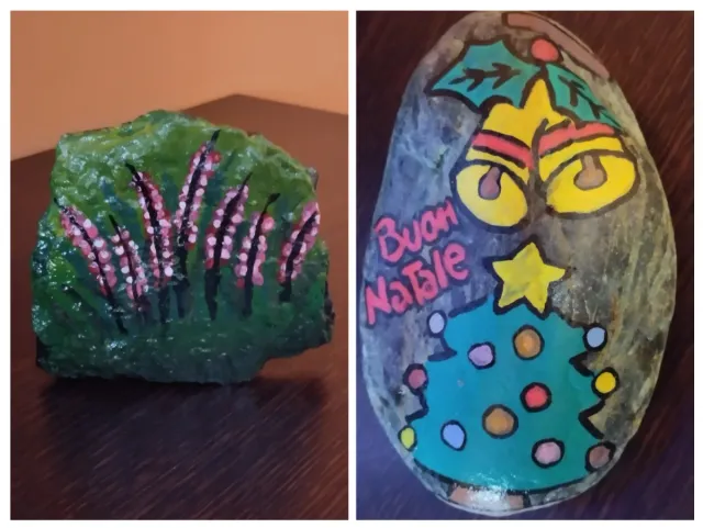 Pietre dipinte a mano.fiori e natale