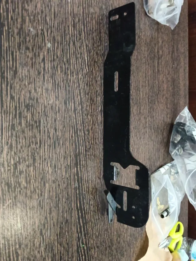 Le parti di macchine da cucire vengono vendute. - Parte in metallo nero. - Con fessure e fori per il montaggio.