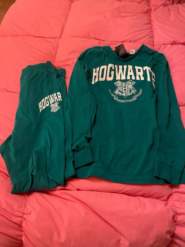Set pigiama per bambino a tema Hogwarts, taglia 10/12 anni. - Colore verde. - Maglia a maniche lunghe. - Pantaloni con elastico in vita e laccetti.