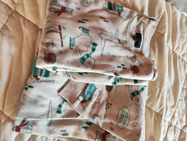 Pigiama caldo in pile - Fantasia con pupazzi di neve e fiocchi. - Tessuto morbido. - Marchio OVS. Usato ma ancora sfruttabile