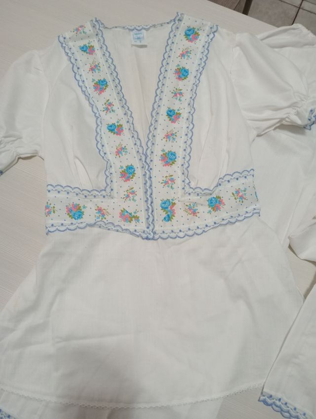 Dettagli del prodottoBellissimo pigiama vintage in cotone, bianco con dettagli blu.