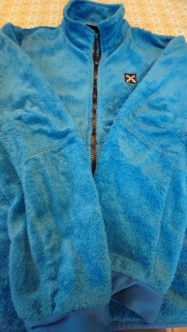 Pile Montura in tessuto orsetto, taglia 12 anni (155 cm). - Colore blu acceso. - Zip frontale. - Logo Montura sul petto.