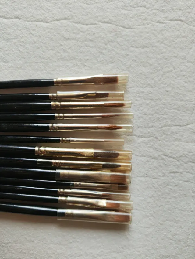 Dettagli del prodottoSet di pennelli del marchio Rembrandt. Include varie dimensioni e forme per diverse tecniche di pittura. Manico nero. Anello metallico dorato. Punta in setole. La descrizione è stata tradotta automaticamente.