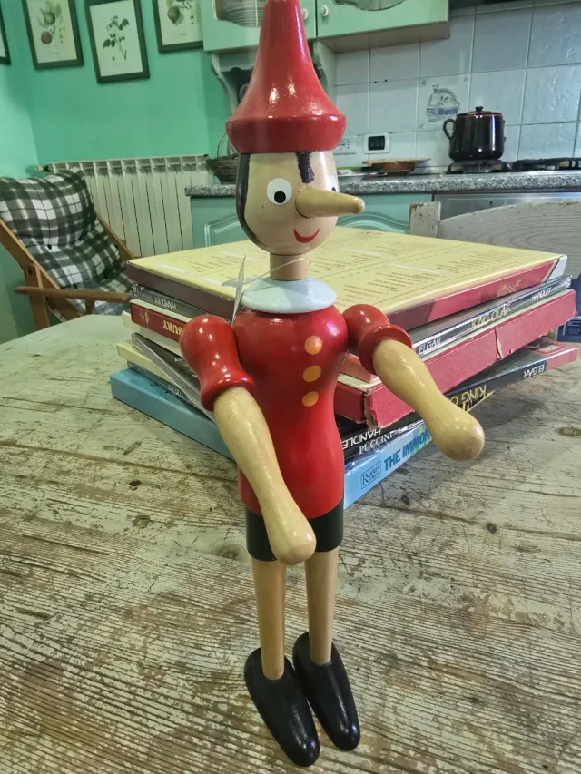 Classico burattino di Pinocchio in legno, un pezzo da collezione. - Realizzato in legno dipinto. - Dettagli colorati. - Design iconico.