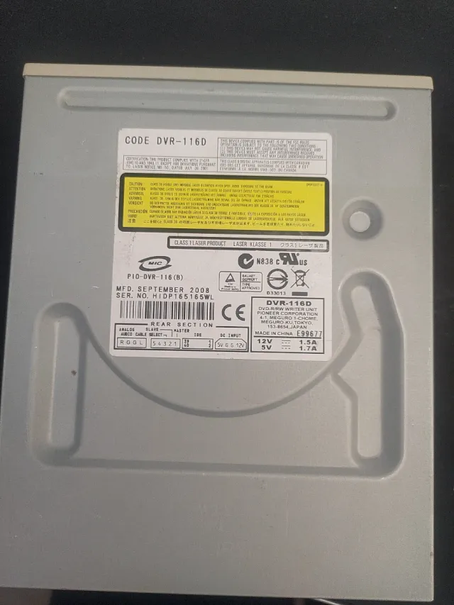 Masterizzatore DVD interno Pioneer DVR-116D. - Modello: DVR-116D - Numero di serie: HIDP165165WL - Alimentazione: 12V 1.5A, 5V 1.7A