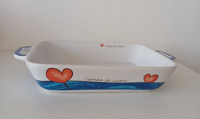 pirofila da forno EGAN. ceramica bianca . usata 1 volta. misura 31 cm × 24.5 cm senza contare i manici. con i manici la lunghezza è di cm 37