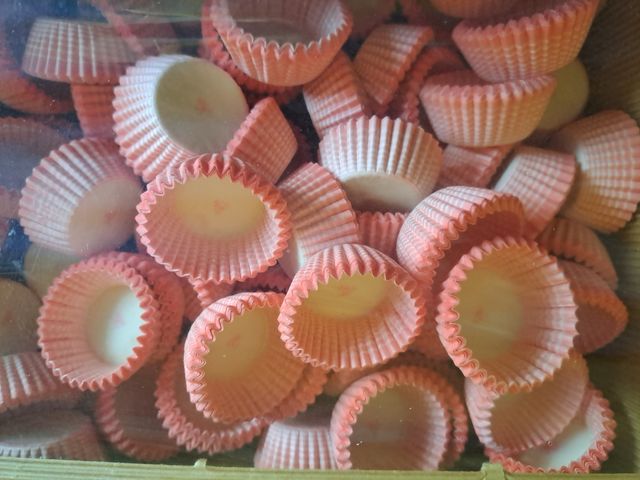 Pirottini in carta piccoli, adatti per cioccolatini o piccoli biscotti, diametro massimo 4cm, altezza circa 2cm. La confezione è sigillata e contiene 2000 pezzi.