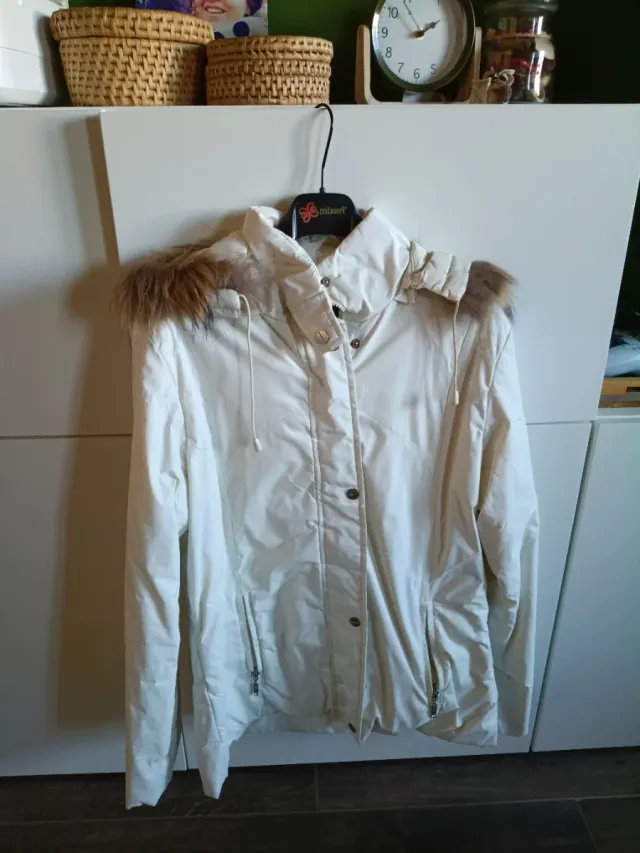 Piumino bianco con cappuccio e pelliccia