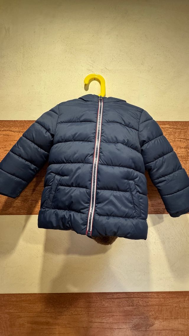Bellissimo piumino per bambino di 24 mesi, in ottime condizioni. - Colore blu scuro - Imbottitura calda - Cerniera frontale - Cappuccio integrato - Tasche laterali