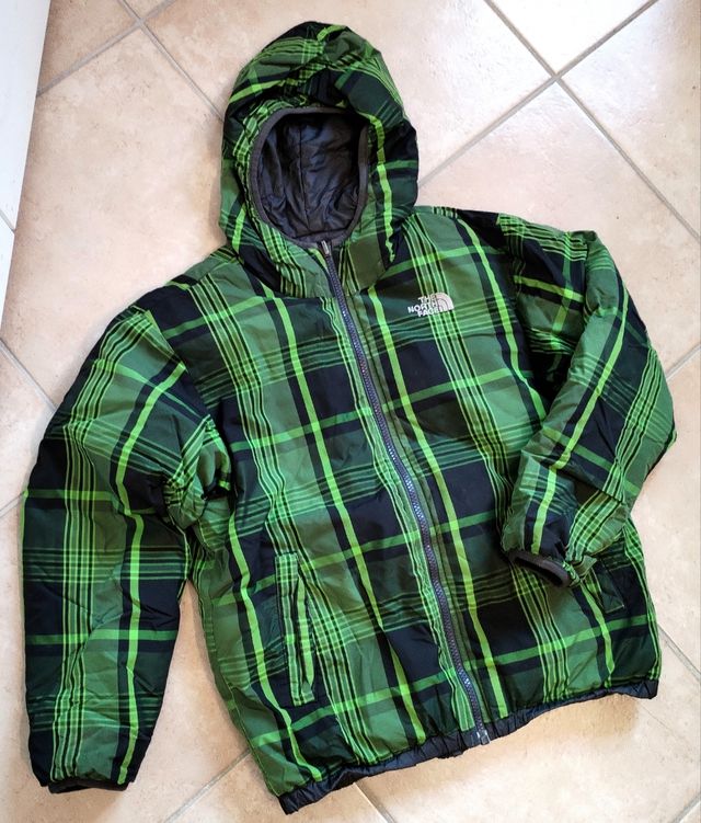 Dettagli del prodottoCaldo piumino in piuma d'oca per bambino con fantasia a quadri, reversibile.