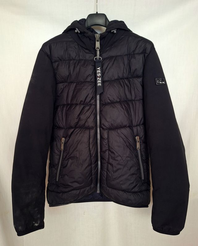 Dettagli del prodottoPiumino Yes Zee Jeans modello Protector, termico con membrana idrorepellente. In poliammide; colorenero. Chiusura con cerniera grigia; tasche con zip; cappuccio con coulisse. Trapuntato tranne che sulle maniche e nella parte esterna del cappuccio, che sono lisci. Prezzo di acquisto 120€ (verificabile anche online) e in ottime condizioni. Taglia L ragazzo (modello unisex perfetto anche per una L donna - vedi misure): spalle 42 cm, petto 47 cm, maniche 60,5 cm, lunghezza 60,5 cm