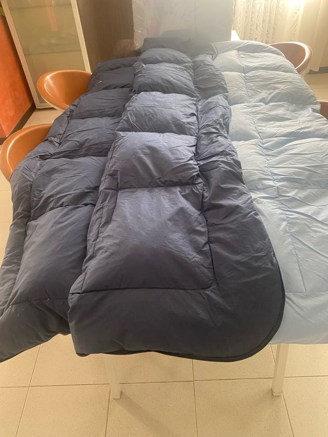 2 piumoni imbottiti piuma d’oca una piazza cm 250x185 double face azzurro/blu