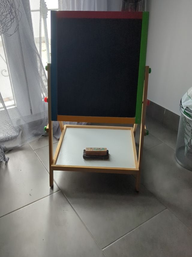 Dettagli del prodottoLavagna bianca per pennarelli e lavagna per gessetti cancellabili, lavagna bianca 2 in 1, cavalletto in legno, 33 x 68 x 38 cm. Include una gomma La descrizione è stata tradotta automaticamente.Misure del prodotto