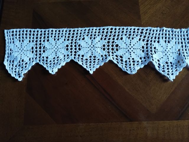 Pizzo in cotone lavorato a mano. Ottime condizioni. Misura 170×16 cm