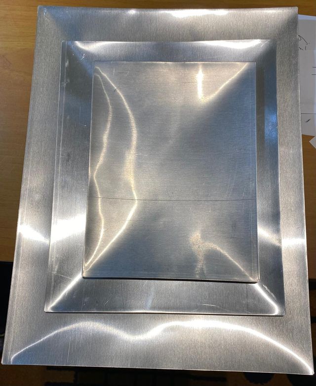 Dettagli del prodotto3 lastre in alluminio con forma concava. Si utilizzano per imitare smalti a freddo, poiché sono molto più economiche del rame rispetto. Dimensioni: - 18x24 cm, 0,8 mm di spessore. - 24x30 cm, 0,8 mm di spessore. - 30x40 cm, 1 mm di spessore. La descrizione è stata tradotta automaticamente.