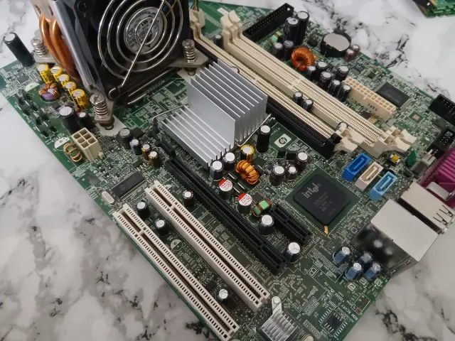Dettagli del prodottoScheda madre del marchio HP. Componente principale per computer desktop. Design compatto ed efficiente. Funziona correttamente, proviene da un computer HP Compaq dc7700p. Viene consegnato come si vede nelle foto. La descrizione è stata tradotta automaticamente.