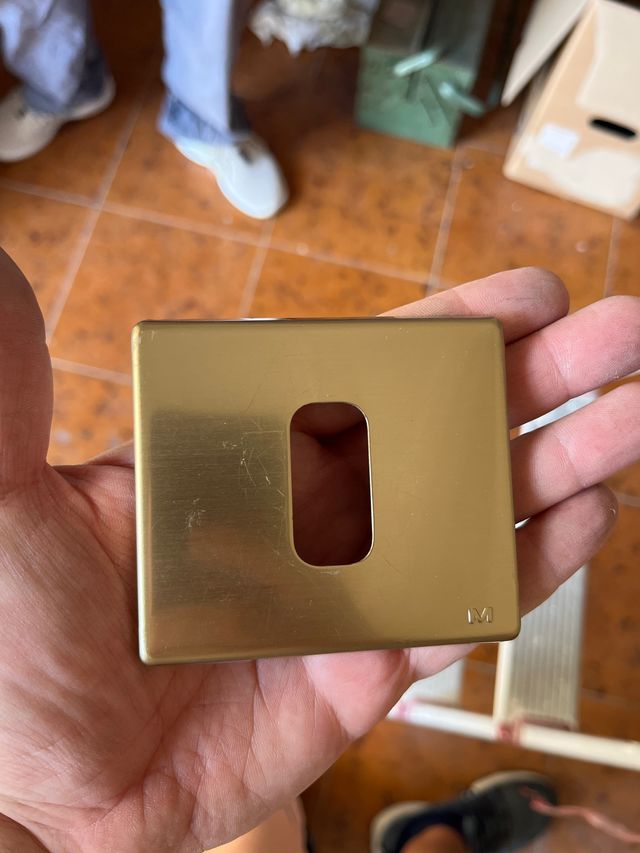 Dettagli del prodottoPlacca coprifilo Molveno in color oro. Perfetta per completare l'installazione elettrica.