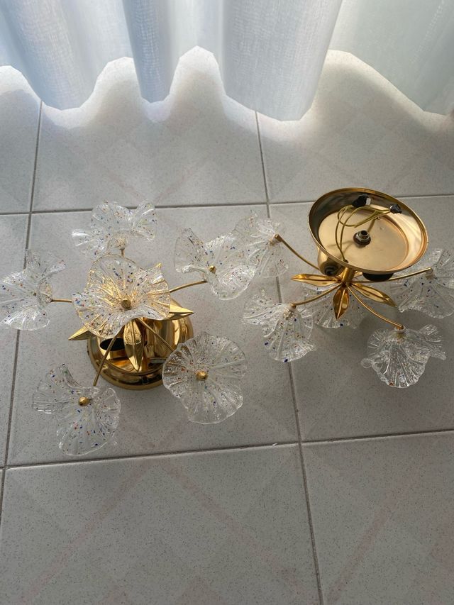 Plafoniera oro e trasparente con fiori