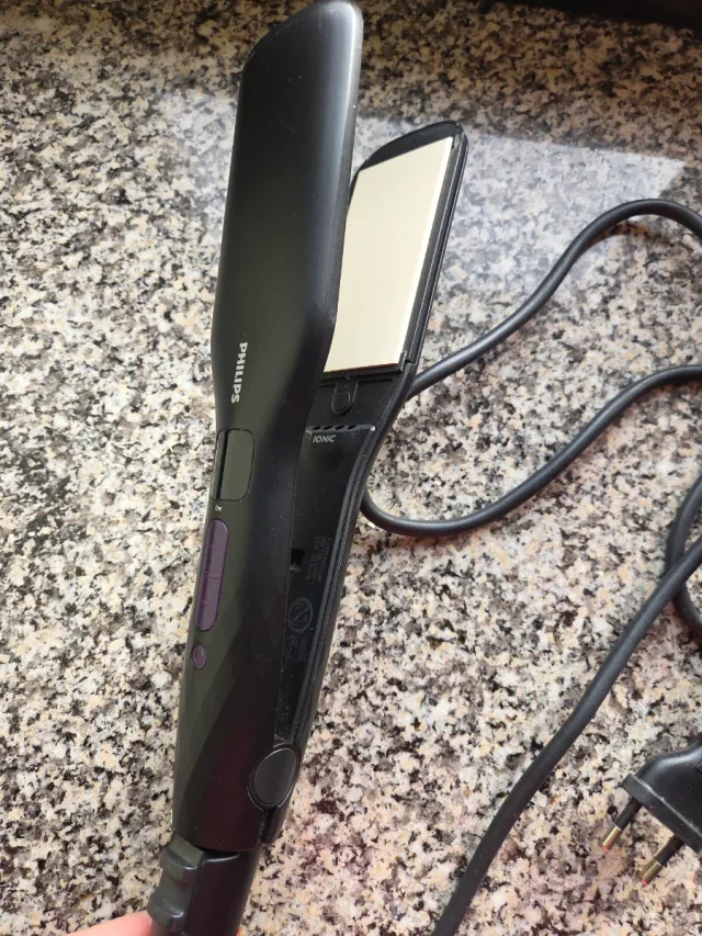 Dettagli del prodottoPiastra per capelli del marchio Philips con tecnologia ionica e piastre in ceramica, in buone condizioni.