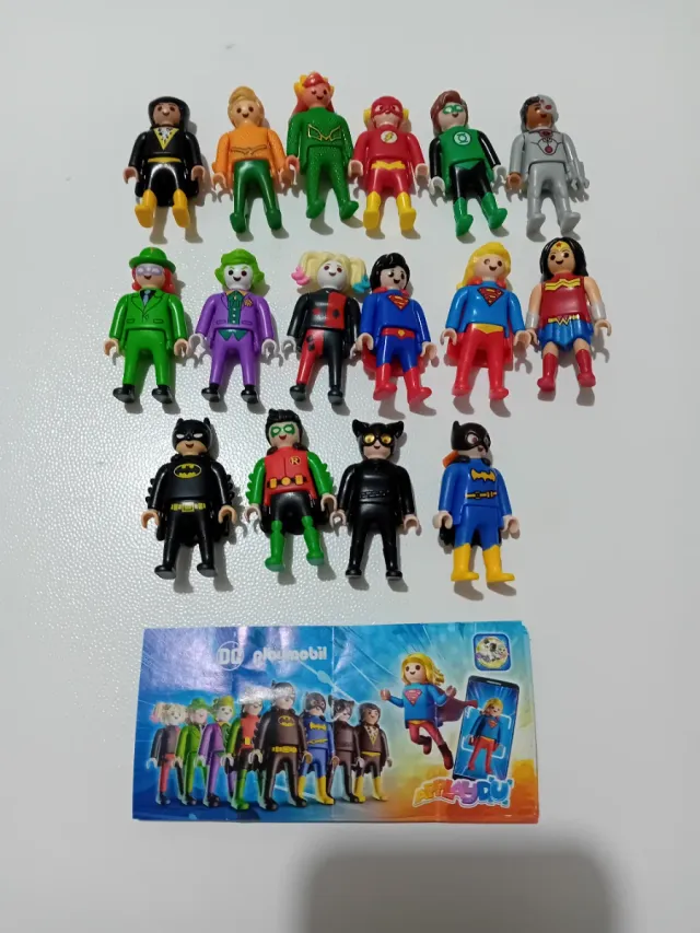 Dettagli del prodottoLotto misto di personaggi Playmobil ispirati ai supereroi e cattivi DC Comics.