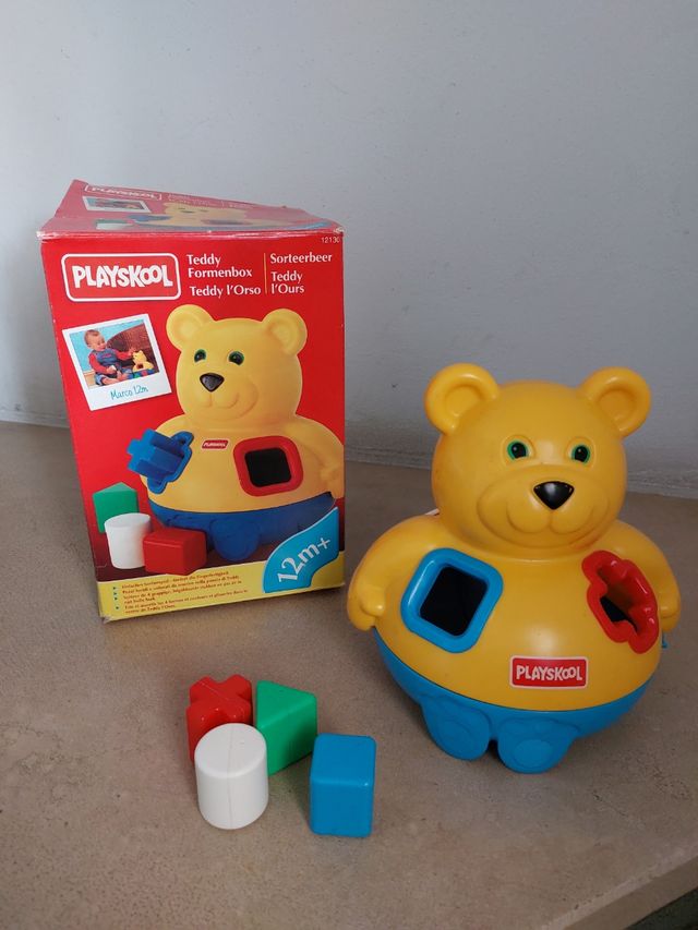 Dettagli del prodottoBellissimo gioco vintage Playskool Teddy l'Orso, ideale per bambini dai 12 mesi. Il tenero orsetto giallo è in ottime condizioni ed è perfetto per stimolare la coordinazione occhio-mano e il riconoscimento delle forme.