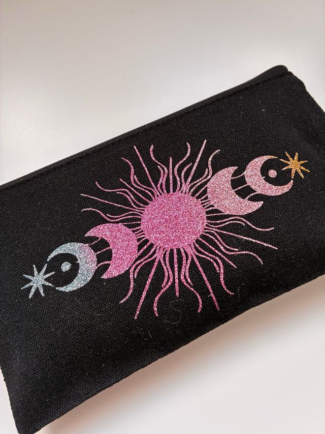 Pochette nera con stampa vinile sole e lune
