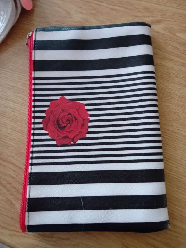 Pochette portatrucco a righe con rosa rossa