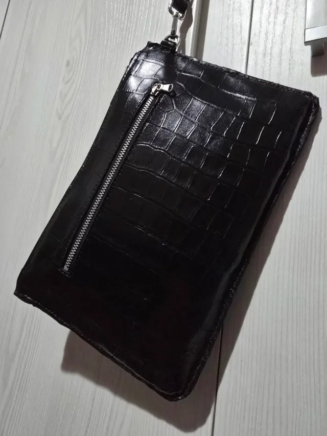 Pochette vera pelle stampa cocco nera