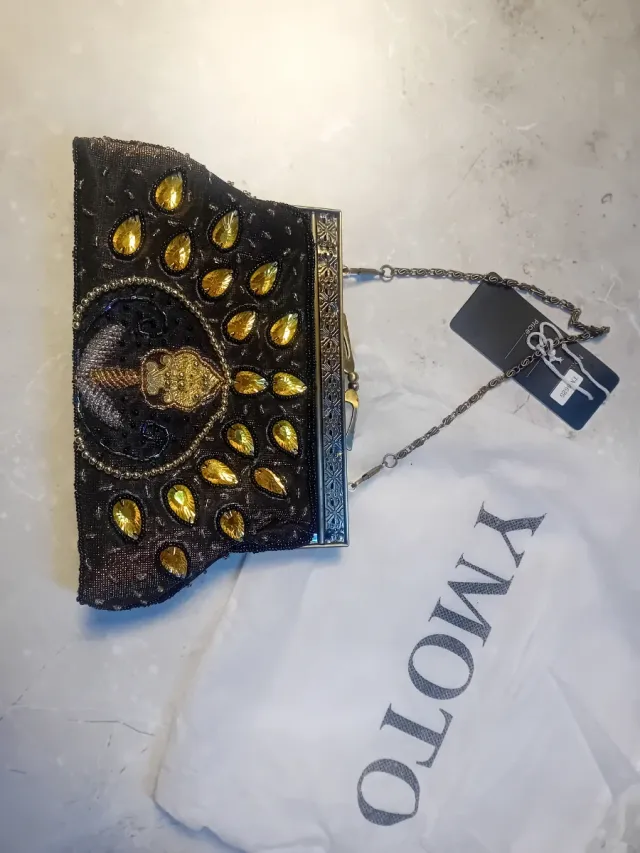 Pochette Ymoto ricamata nera e oro