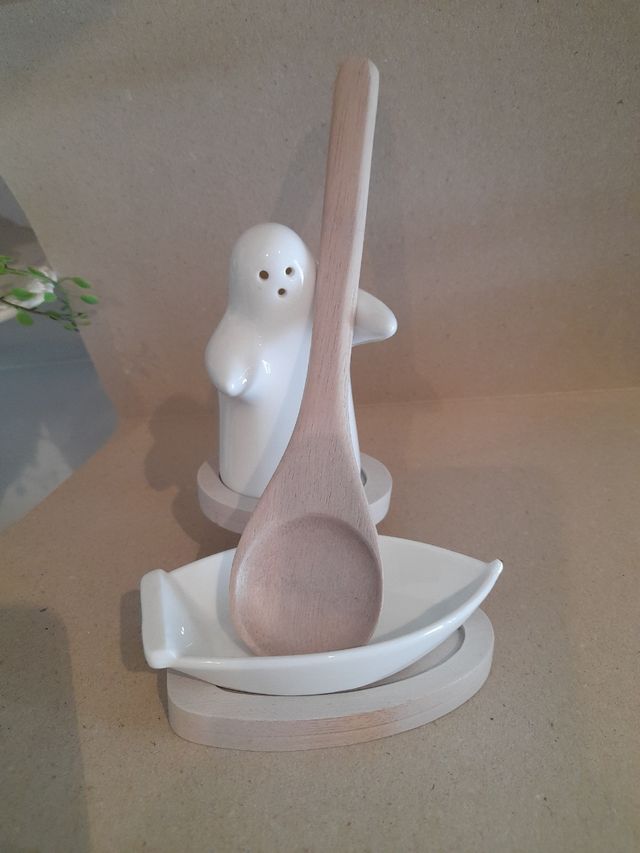 poggiamestolo con base legno e fantastico spargisale