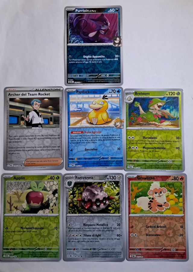 Lotto 7 card Pokèmon Condizioni Near Mint NM Usato seconda mano Consegna a mano nelle vicinanze o spedizione.
