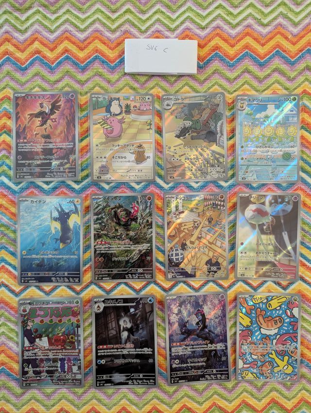 Dettagli del prodottoVendo set completo di 12 carte Art Rare (AR) della serie Pokémon Mask of Change (SV6).