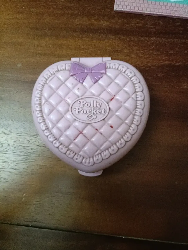 Grazioso Polly Pocket a forma di cuore, perfetto per portare con sé.