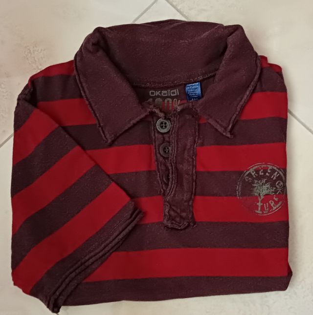 Usata ma in ottime condizioni, righe marrone e bordeaux, stampa davanti e dietro, chiusura a tre bottoncini, tg.8 anni, puro cotone