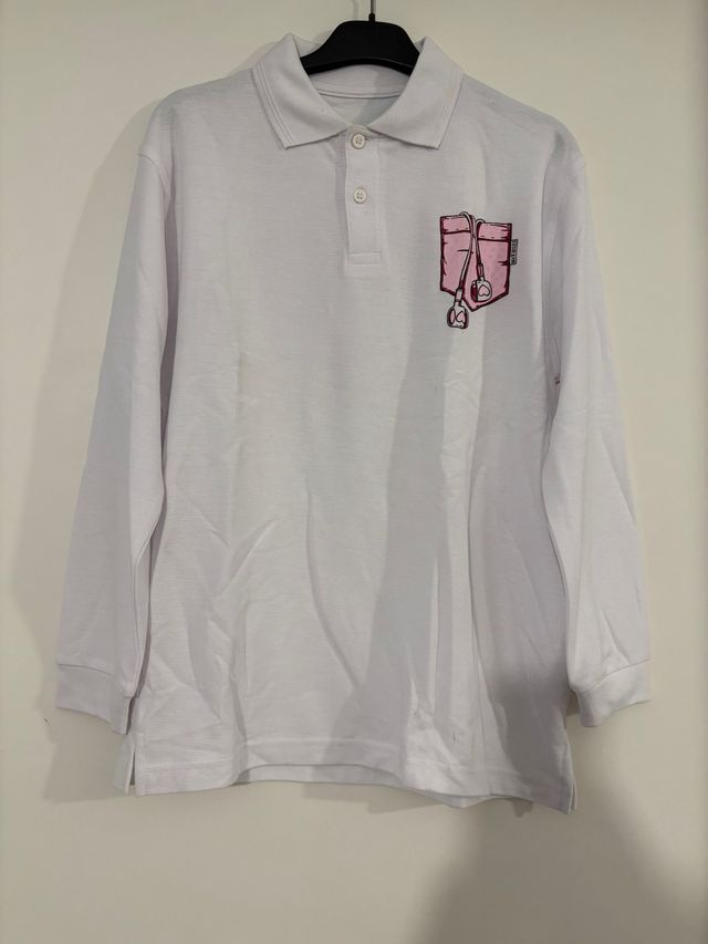 Polo a manica lunga in cotone, ideale per bambini. - Disponibile nelle taglie 4, 8, 10 e 12 anni. - Design con taschino e stampa a tema medico.
