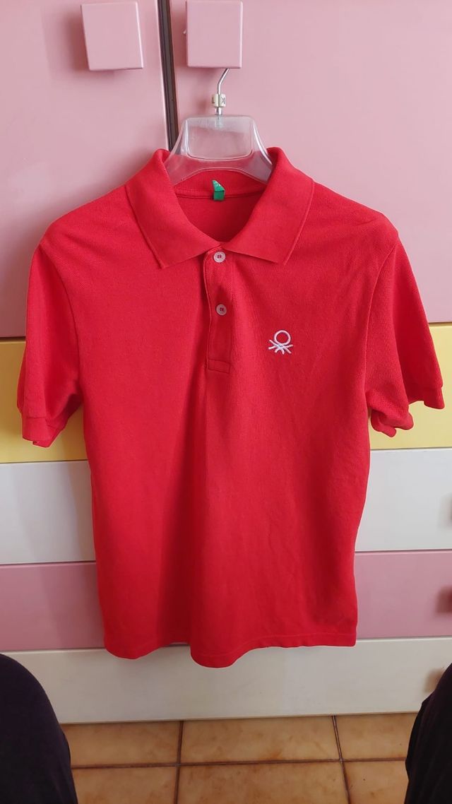 Dettagli del prodottoPolo rossa a maniche corte per bambini, marca Benetton.