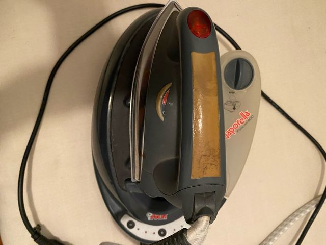 Generatore di vapore Polti Vaporella. - Colore grigio e dettagli color oro. - Manopola di regolazione temperatura. - Spia luminosa.